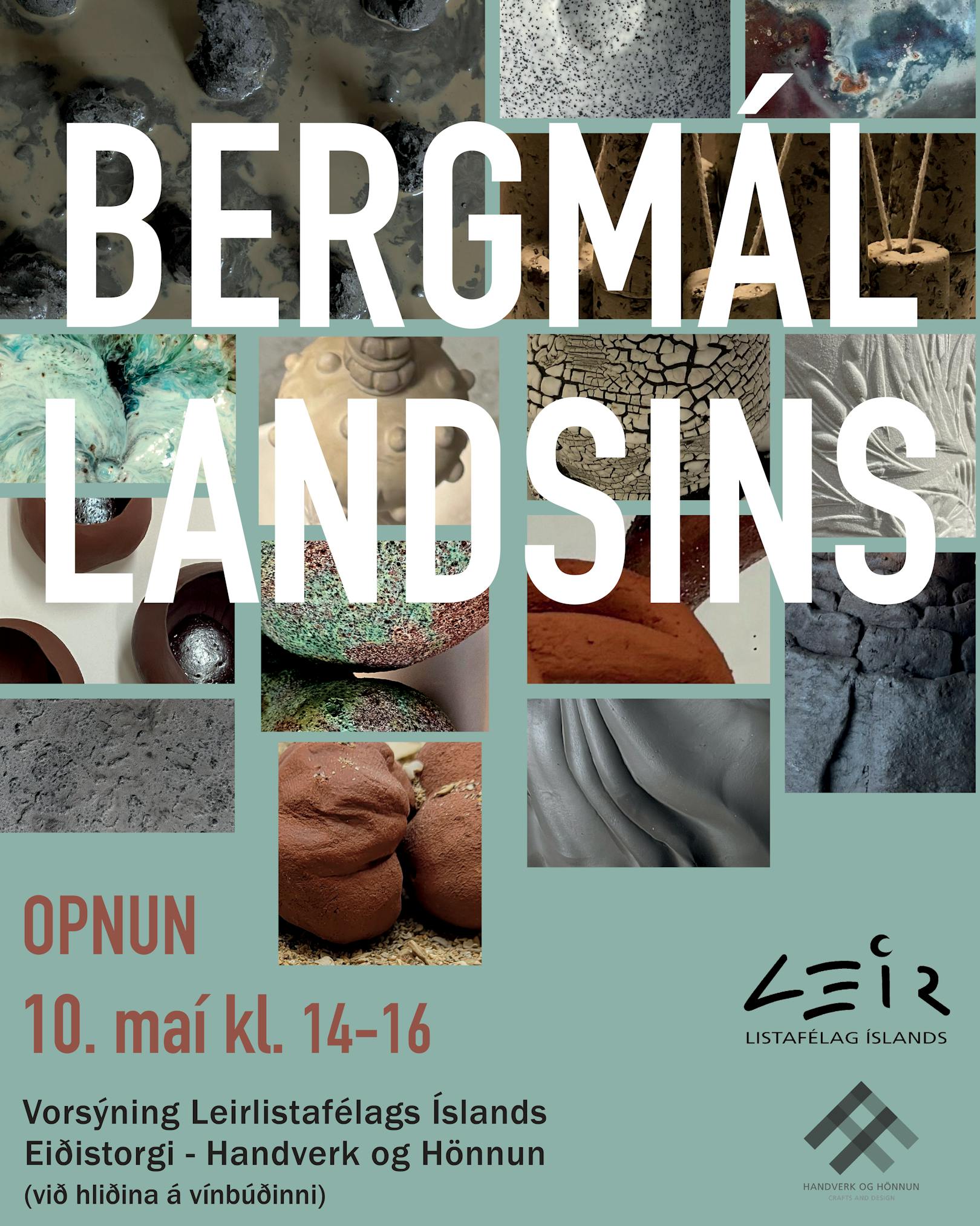 Samsýning Leirlistafélagsins opnar laugardaginn 10. maí frá kl. 14-16 í sal Handverks og hönnunar á Eiðistorgi. Þar sýna fimmtán félagar verk sem endurspegla hugmyndir þeirra um tengsl leirlistar við náttúruna þar sem sjálfbærni, lífræn form, fjölbreytileiki og jarðbundin efni eru í forgrunni.