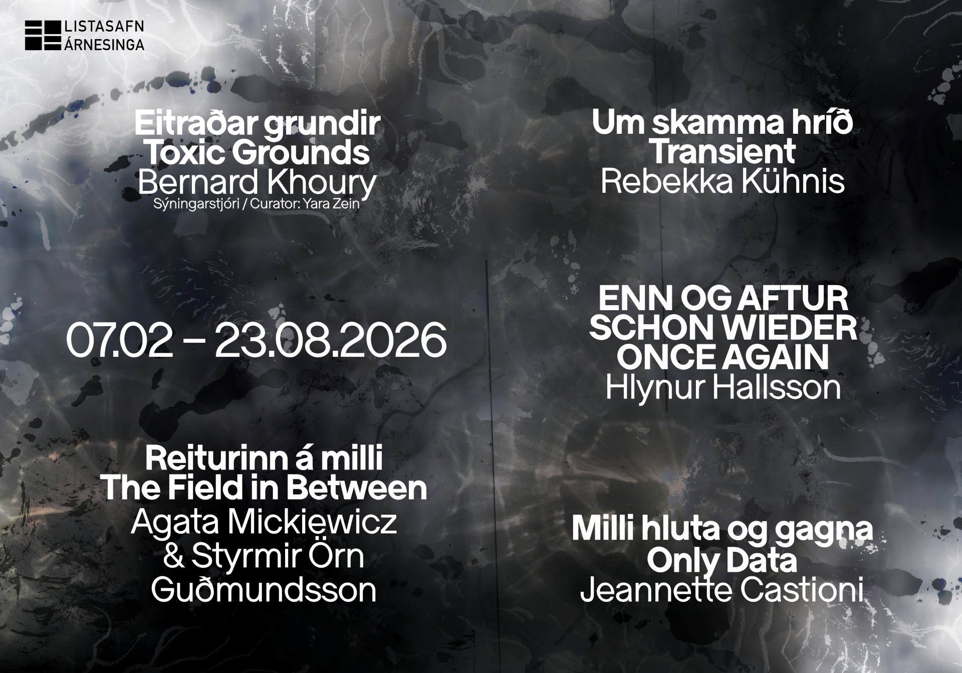 Arkitektinn og listamaðurinn Bernard Khoury opnar sína fyrstu einkasýningu á Íslandi í Listasafni Árnesinga. Sýningin stendur yfir frá 7. febrúar til 23. ágúst 2026.