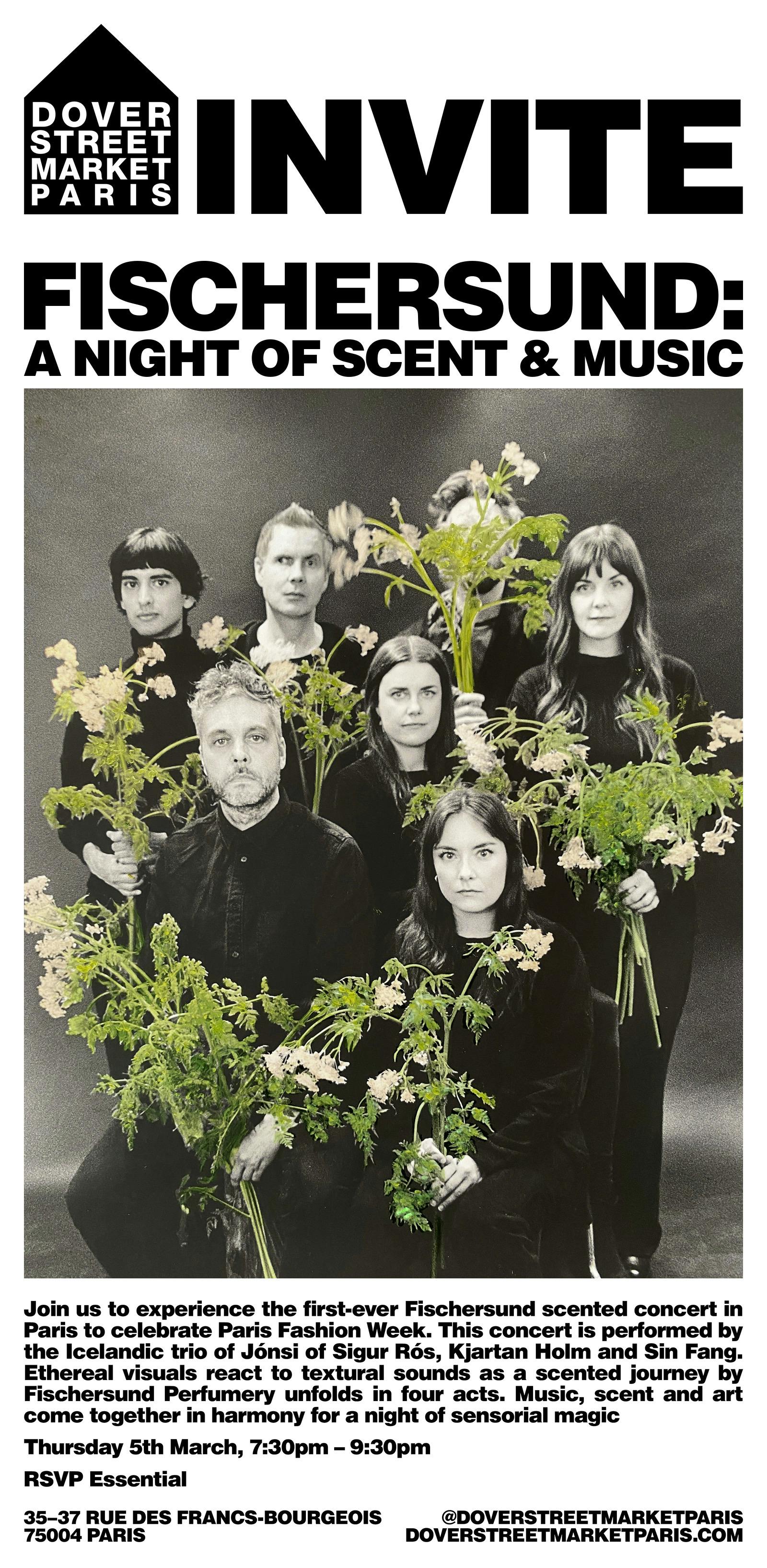 Viðburðurinn fléttast saman við kynningu á nýjasta ilm Fischersund, Faux Flora No. 1. Ilmurinn er innblásinn af nærri 500 innlendum plöntutegundum á Íslandi, sem og vísindalegu samhengi milli lyktarskins og minnis. Innsetningin er yfirgripsmikil skynræn upplifun sem felur í sér ferðalag um heim ilmanna. Þetta verður án efa órjúfanlegur hluti af upplifun kvöldsins.