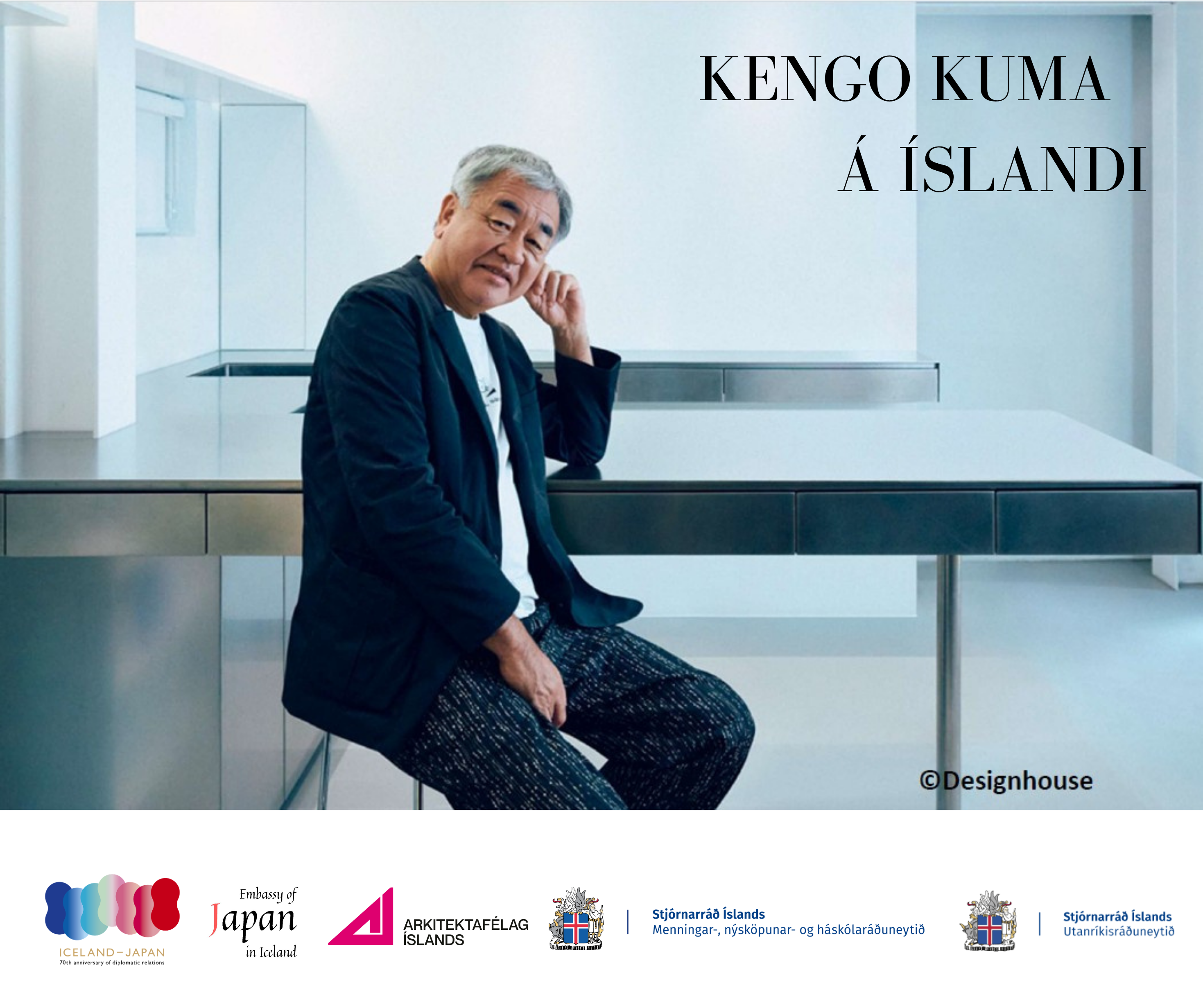 Af því tilefni hefur sendiráð Japans á Íslandi, í samstarfi við utanríkisráðuneyti Íslands, menningar-, nýsköpunar- og háskólaráðuneytið og Arkitektafélag Íslands, boðið hingað til lands hinum virta japanska arkitekt Kengo Kuma, sem mun halda opinn fyrirlestur í Grósku fimmtudaginn 30. apríl kl. 17.