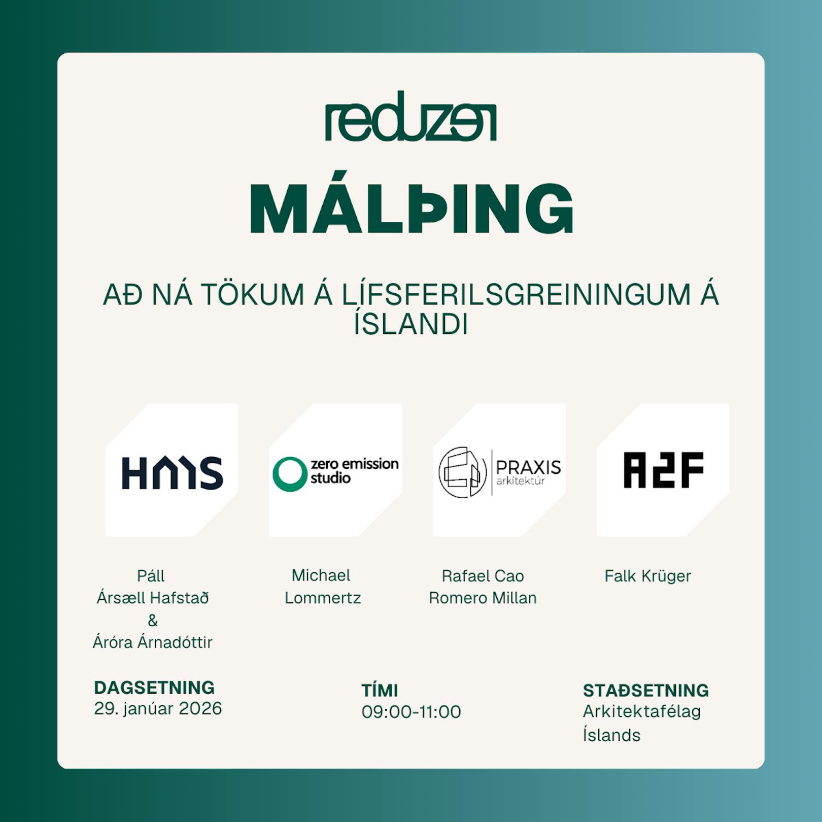 Lífsferilsgreiningar (LCA) eru nú lögbundin krafa fyrir útgáfu byggingarleyfa á Íslandi í tilteknum umfangsflokkum. Af því tilefni býður Reduzer til málþings í samstarfi við Arkitektafélag Íslands þann 29. janúar nk. þar sem farið verður yfir allt sem snýr að LCA í byggingariðnaði. Reduzer er alþjóðleg hugbúnaðarlausn og greiningarvettvangur sem sérhæfir sig í lífsferilsgreiningum og kolefnisreikningum fyrir byggingar og mannvirki.